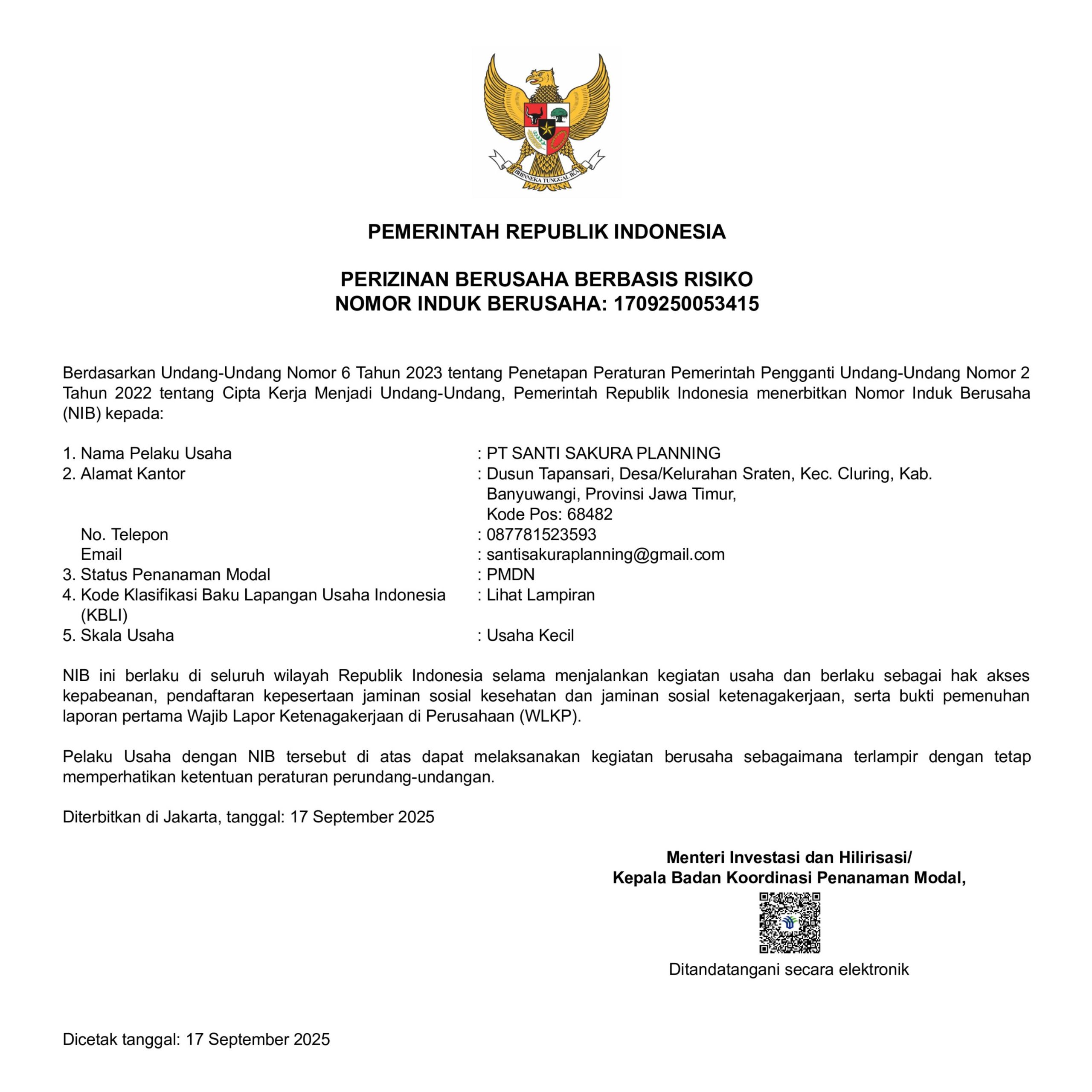 PT. Santi Sakura Planning telah berizin resmi sejak tahun 2025 dan berkomitmen menjalankan proses penempatan tenaga kerja secara legal, aman, dan terpercaya.